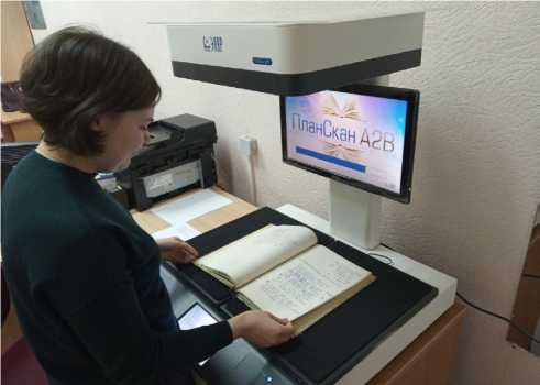 Junior Researcher A. G. Osedakh. Digitization of archival documents (2019).