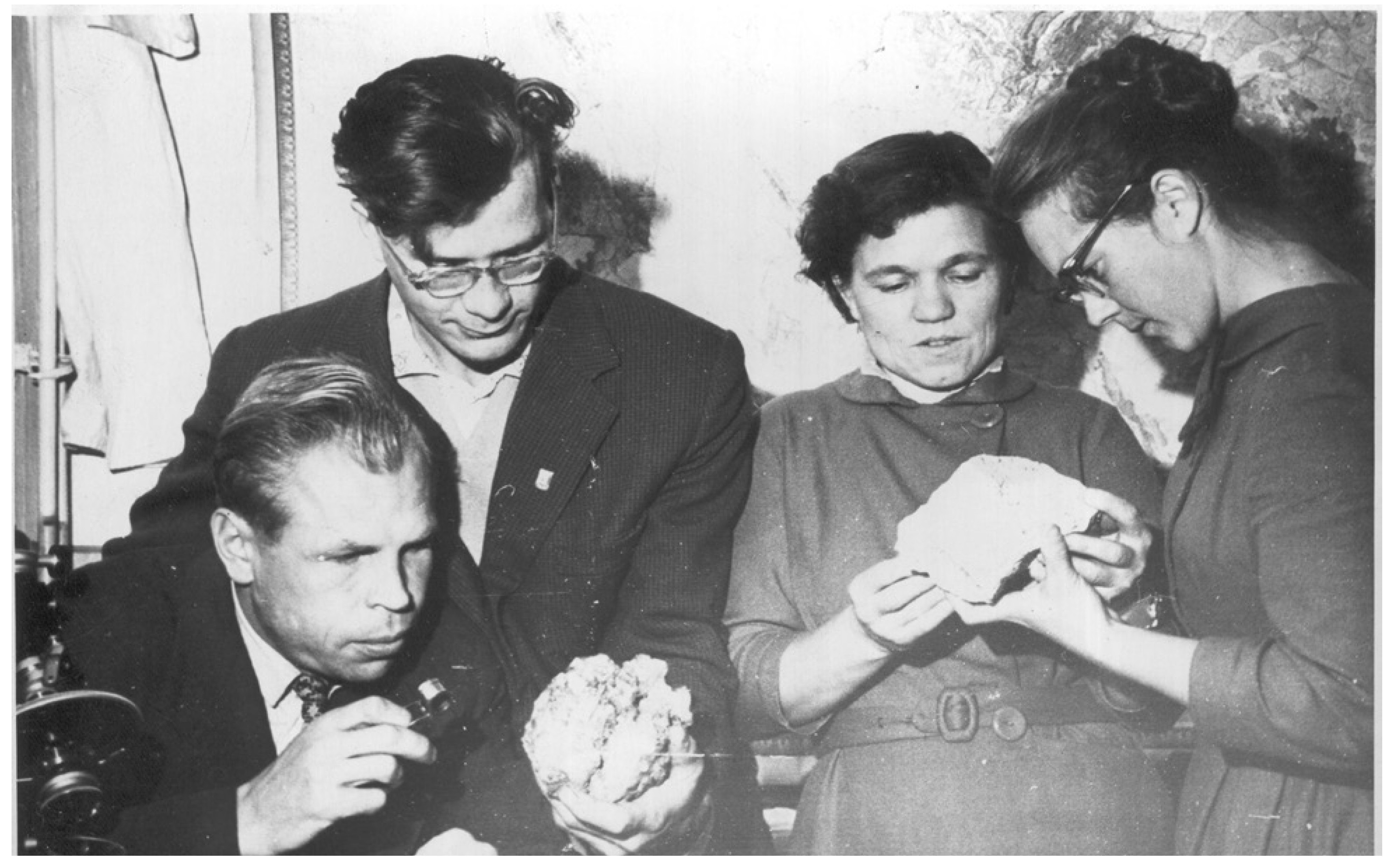 B. A. Goldin, N. I. Timonin, V. I. Eseva and R. G. Timonina (from left to right) (1961).
