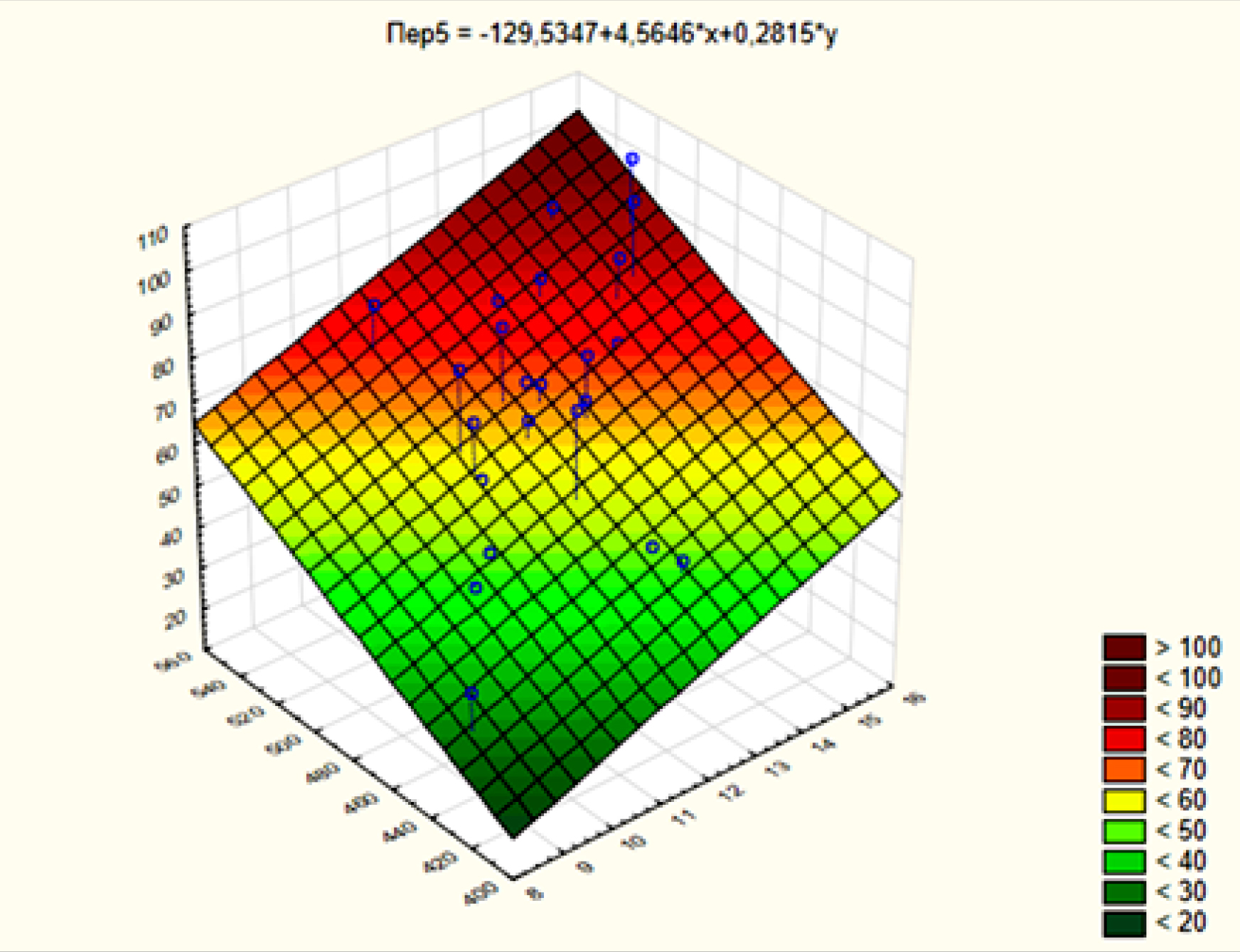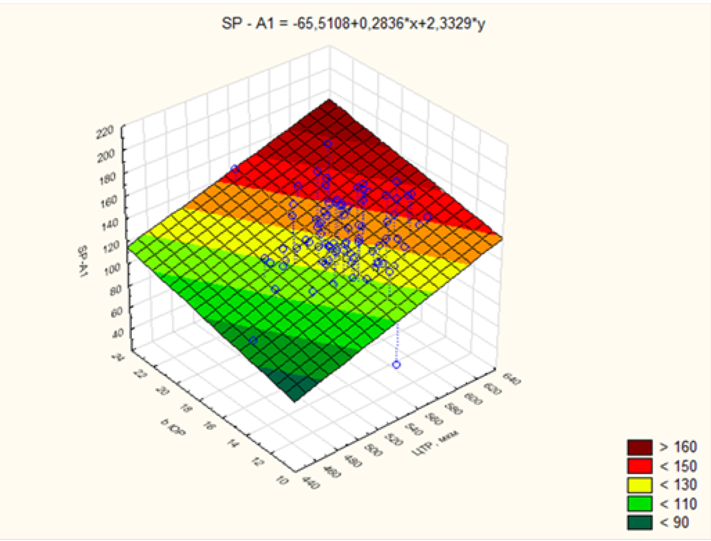 SPA1 = -65,5108 + 0,2836 × х + 2,3329 × y,