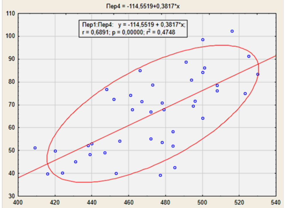 Все коэффициенты данного уравнения были статистически достоверны (р < 0,05) (рис. 6).