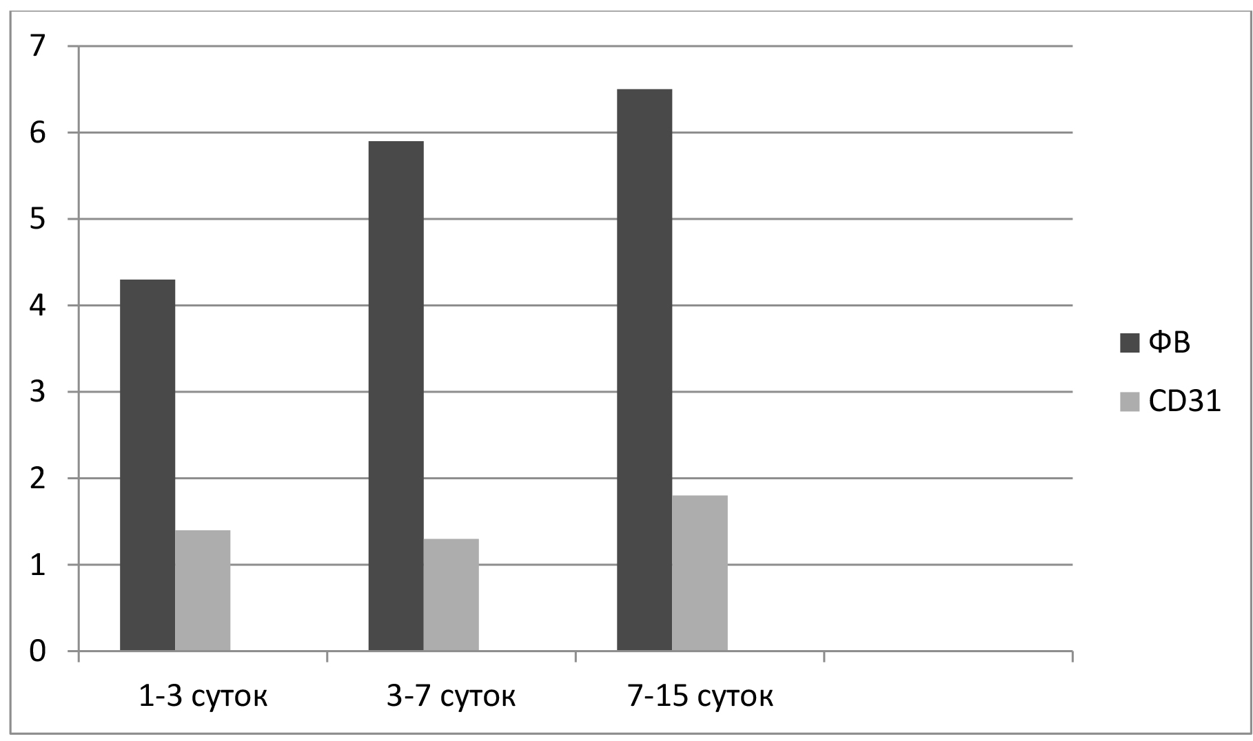 Результаты компьютерной морфометрии и статистической обработки экспрессии CD31, ФВ представлены на рис. 9.