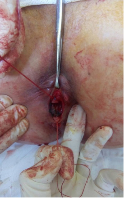 Modified ligation method fistular tract in the interspinctern space for transfincteral pararectal fistulas