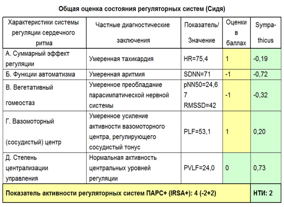Общая оценка состояния регуляторных систем на конечном этапе исследования в КГ свидетельствует о нестабильности состояния регуляторных систем. Наблюдается умеренная тахикардия, умеренная аритмия, преобладание парасимпатической активности, усиление активности вазомоторного центра (рис. 3). Это подтверждают необходимость применения физкультурно-оздоровительных занятий на уроках физической культуры с учетом ТВР.