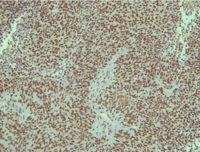 Исследования иммуногистохимической панели показали, что в клетках ЭНБ, как и в других опухолях нейроэктодермального генеза, определяется экспрессия нейрон-специфической энолазы (NSE), синаптофизина, хромогранина, S-100 протеина, и не выражена экспрессия эпителиальных маркеров [8, 9].