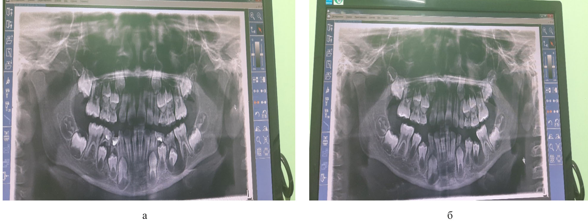 Рис. 5. ОПТГ пациента: а) до лечения; б) через 3 месяца