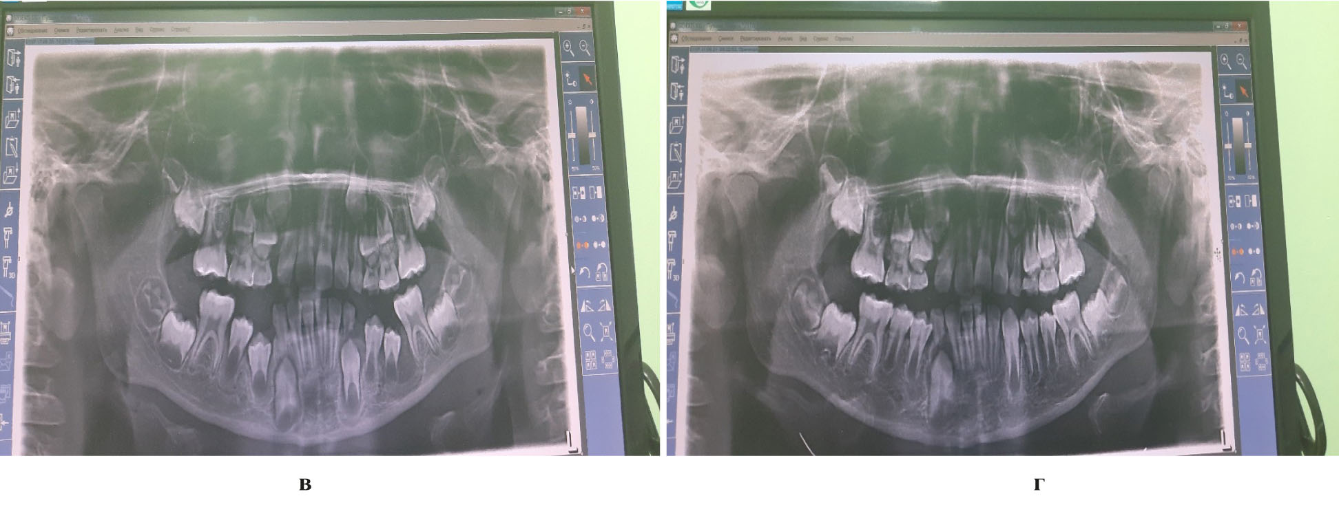 Рис. 5 (окончание). ОПТГ пациента: в) ОПТГ через 6 мес; г) через 12 мес. после операции
