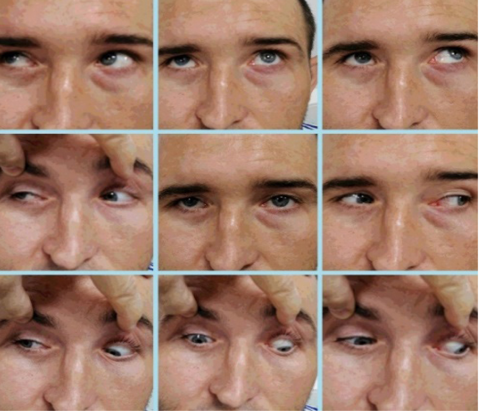 Состояние, при котором происходит полное разобщение проксимальной и дистальной частей (с сохранением целостности мышечной сумки либо с ее нарушением), называется травматическая миотомия [4]. Основным клиническим признаком разрыва ЭОМ является практически полное отсутствие подвижности глазного яблока в сторону ее действия [5, 6, 7]. А также отклонение глаза в противоположную сторону и бинокулярная диплопия как проявление сенсорной аномалии [8, 9, 10, 11, 12].