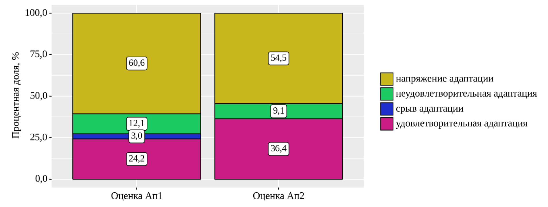 Неудовлетворительная адаптация | 12,1 | 9,1 | |