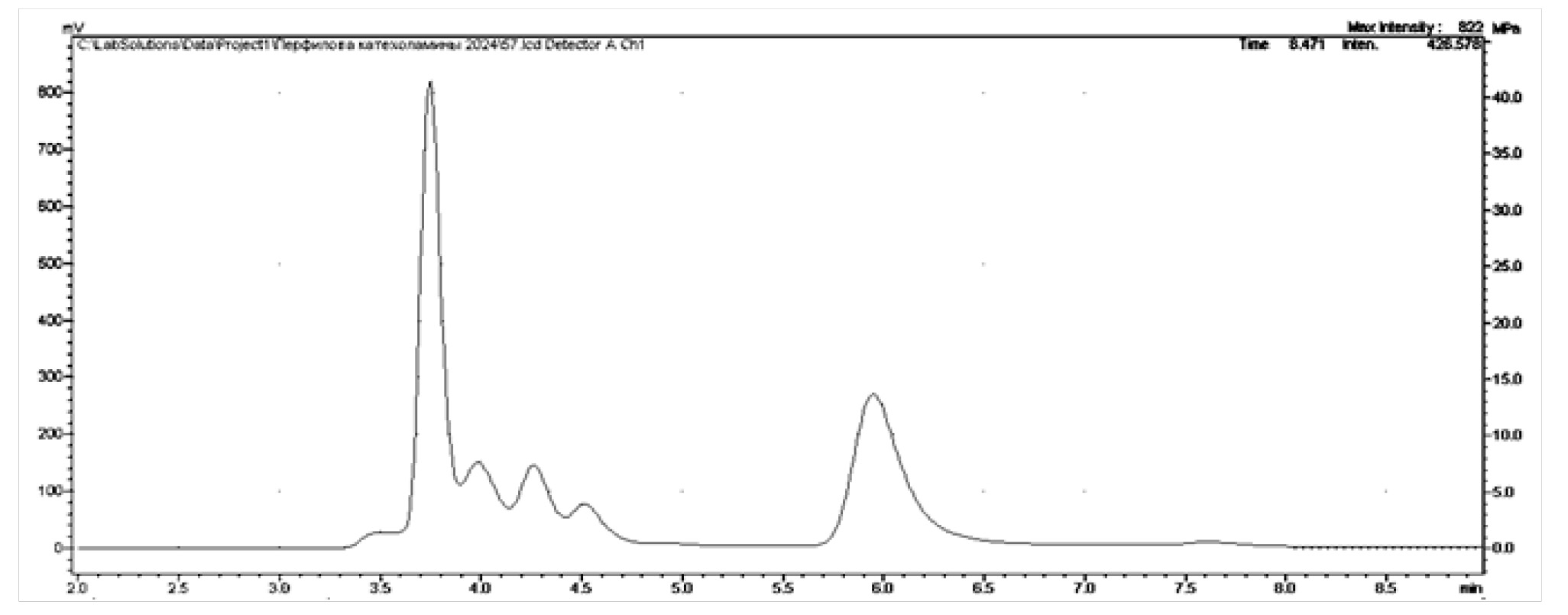 Высокоэффективная жидкостная хроматография (ВЭЖХ) с флуоресцентным детектированием является высокоспецифичным методом анализа катехоламинов (норадреналин, дофамин), индоламинов (серотонин) и их основных метаболитов в биологических образцах [9]. Этот метод основан на способности моноаминов к флуоресценции после их химической дериватизации, что обеспечивает высокую селективность и чувствительность при анализе микрообъемов ткани мозга. Полученные данные открывают новые возможности для исследования молекулярных механизмов, лежащих в основе нервных дисфункций, и создают фундамент для дальнейших разработок в области диагностики и терапии.