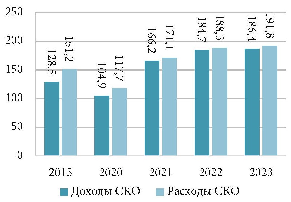 Сравнение темпов изменения основных показателей СКО позволяет сделать вывод об их замедлении в 2022–2023 гг. (рис. 2).