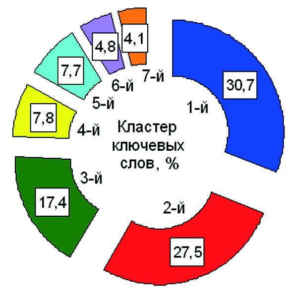 Рис. 3. Структура силы связи ключевых слов в кластерах (%).