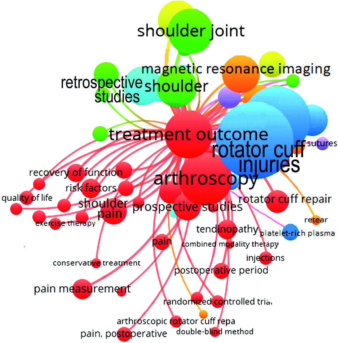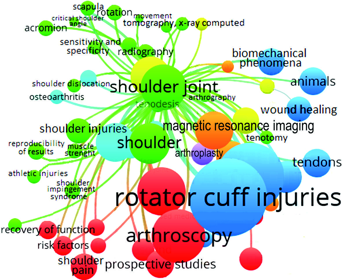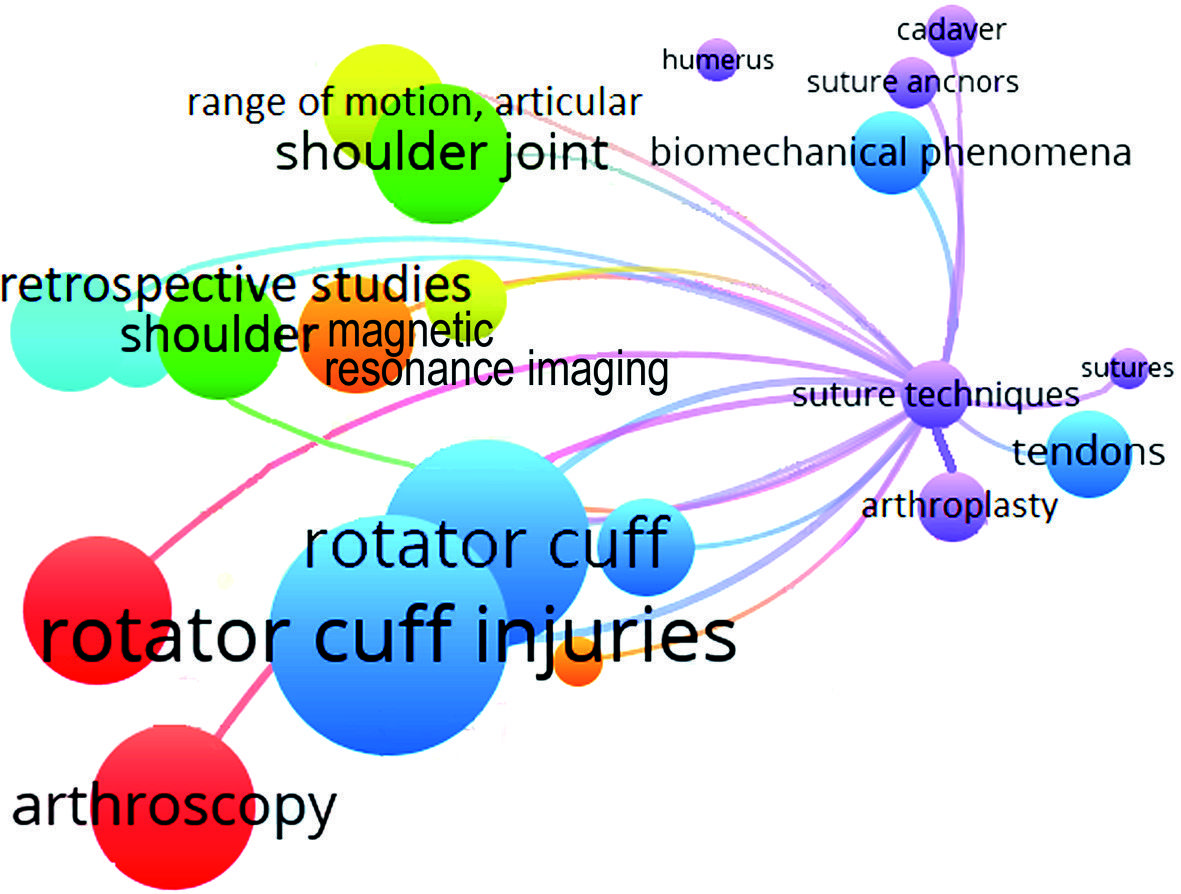 The objective of this study is to perform a cluster analysis and visualization of keywords in international publications on rotator cuff injuries using the VOSviewer software.