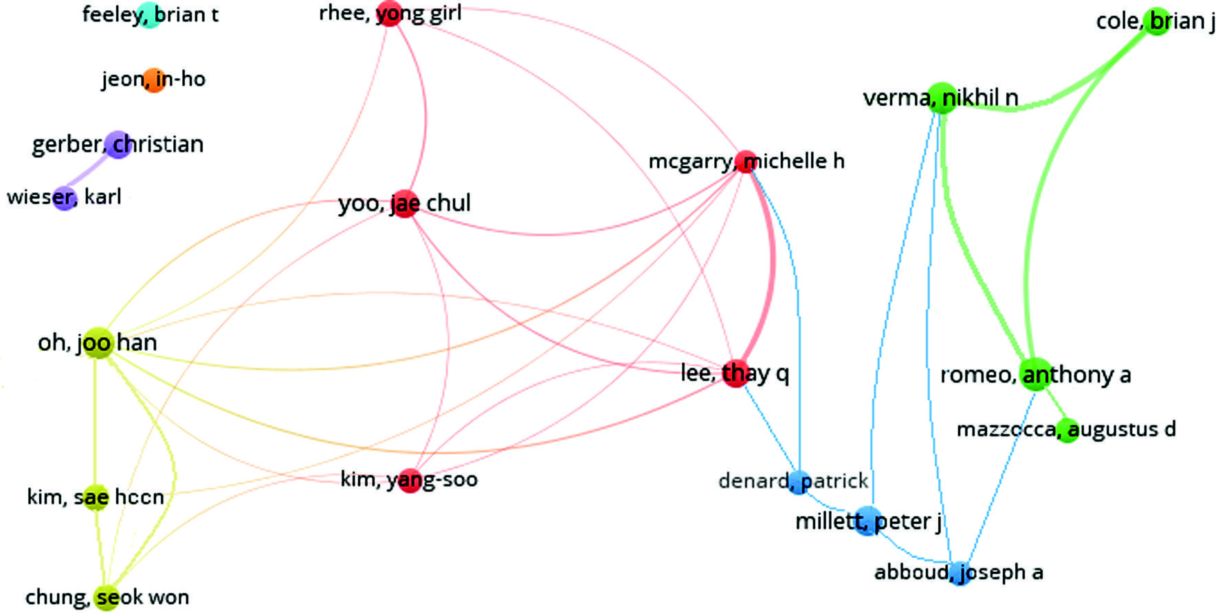 Рис. 12. Кластеры ведущих авторов статей по лечению травм манжеты плеча.