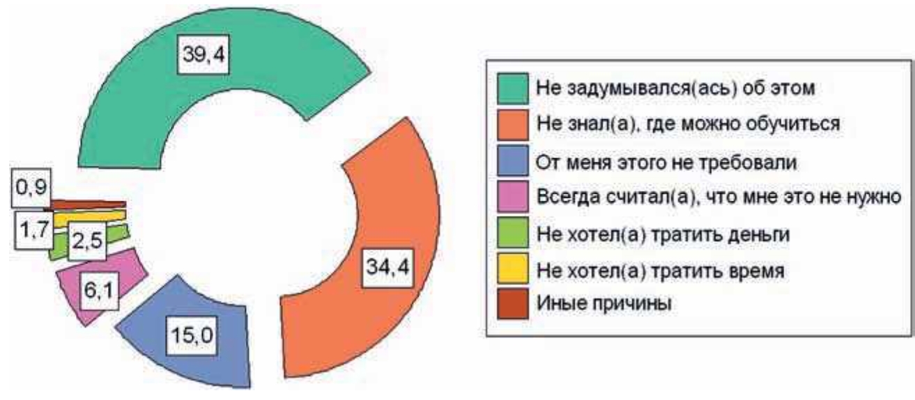 Более 44 % респондентов в прошлом никогда не обучались СЛР, в основном потому, что не задумывались о необходимости такого обучения (39 % респондентов – без опыта обучения СЛР) или не знали, где можно обучиться (34 %). Аналогичные препятствия были отмечены как основные в социологических исследованиях, проведенных в общей популяции [8, 11, 12]. Эти наблюдения подтверждают приоритетные задачи в сфере организации ПП при ОС: во-первых, повышение информированности населения о проблеме ОС, важности оказания ПП свидетелями и необходимости соответствующего обучения; во-вторых, увеличение доступности обучения СЛР. Решению первой задачи может способствовать широкая популяризация СЛР при участии средств массовой коммуникации, требующая адекватного научного и методического сопровождения (включая разработку информационных и учебных материалов, основанных на современных международных рекомендациях по СЛР) и обеспечения контроля за качеством распространяемой информации [36]. Увеличение охвата популяции обучением СЛР и рост частоты оказания ПП в реальных случаях ОС являются доказанными эффектами успешных медиакомпаний [35]. Важность популяризации базовой СЛР подтверждает и тот факт, что желание получить знания по ПП явилось для большинства опрошенных главным фактором, побудившим их к прохождению курса, а также то, что активный поиск возможности пройти курс по ПП осуществляли не более 11 % респондентов.