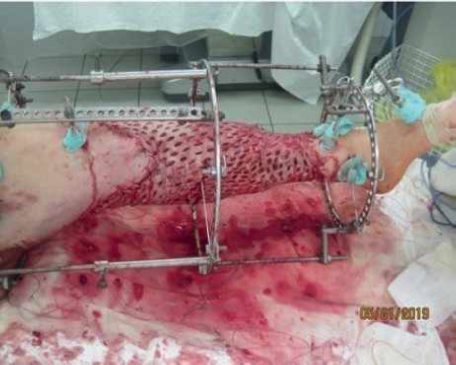 С учетом того факта, что каждый случай травмы имеет особенности по локализации и тяжести поражений, алгоритм принятия решений для их лечения остается предметом дискуссий. На результат лечения оказывают свое влияние множество факторов: локализация, площадь и глубина повреждения тканей, сопутствующие травмы и патологии, лабораторные данные, а также особенности методов лечения: виды первичной хирургической обработки тканей и наложения швов, первоначального консервативного лечения, этапного удаления размозженных тканей, срок и особенности первичной пластики по Красовитову [6, 12, 17]. При подобных травмах также важен способ фиксации конечности. Создание благоприятных условий для заживления ран оптимальнее всего происходит в условиях чрескостного остеосинтеза по Илизарову.