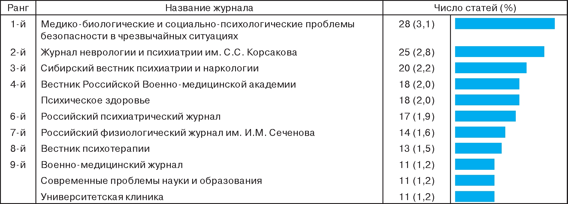 Рис. 3. Распределение по журналам публикаций из подборки статей по боевому стрессу.
