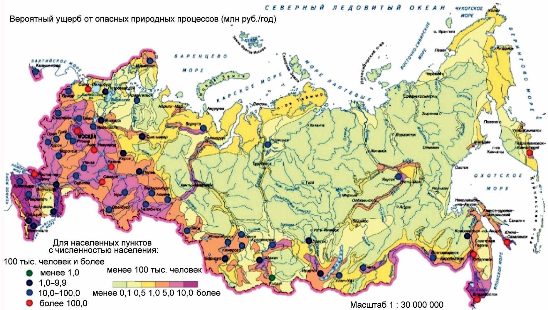 Рис. 3. Оценка природного риска для хозяйственной деятельности и проживания в России [7].