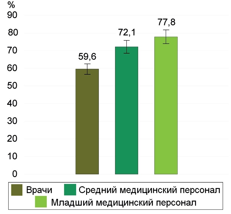 Сравнительный анализ заболеваемости медицинского персонала и населения Санкт-Петербурга в этот период свидетельствовал о значимом различии ее уровня между этими категориями (рис. 1).
