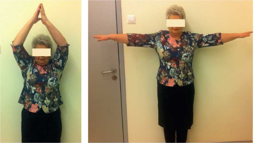 Рис. 7. Больная М., 60 лет. Функциональный результат через 6 мес после операции