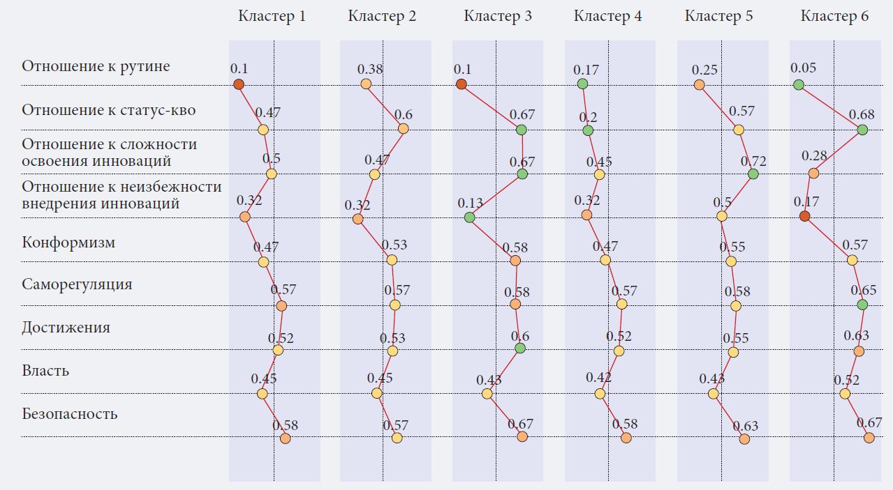 Хотя все менеджеры среднего звена выполняют сходные задачи, их личностные характеристики и поведение весьма различны. Чтобы достичь значимого результата, их ценности и сопротивление цифровому переходу изучались с помощью кластерного анализа, который позволил выявить специфические группы, способные по-разному реагировать на подобные инициативы (Hair et al., 2010). Эти сведения могут помочь организации адаптировать стратегии управления переменами к особенностям различных категорий руководителей, что повысит шансы на успех цифровизации.