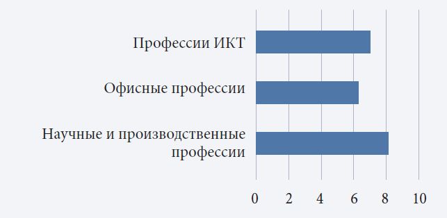 Профессии, отнесенные к категории ISCO-4, — бухгалтерские, административные и офисные — также могут включать подобные задачи, но в меньшей степени.