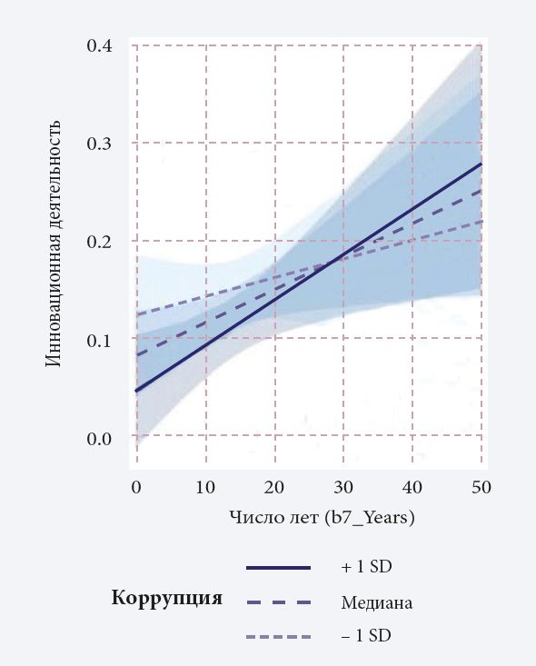 Рис. 2. Связь между коррупцией, опытом руководителей и инновационной деятельностью