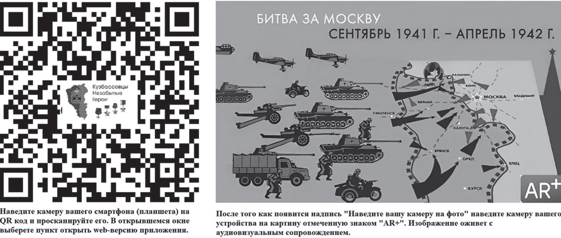 Данные инструменты достаточно удобны и не требуют больших финансовых ресурсов, чтобы применять технологии дополненной реальности в военно-мемориальных выставочных экспозициях, которые уже существуют в музейных учреждениях и школьных музеях Кузбасса. Более того, подобные AR-технологии позволяют существенно насытить выставки тех музейных учреждений, у которых ограничено пространство, невысокий музейный фонд и нехватка технического оборудования для более дорогостоящих AR-выставок.