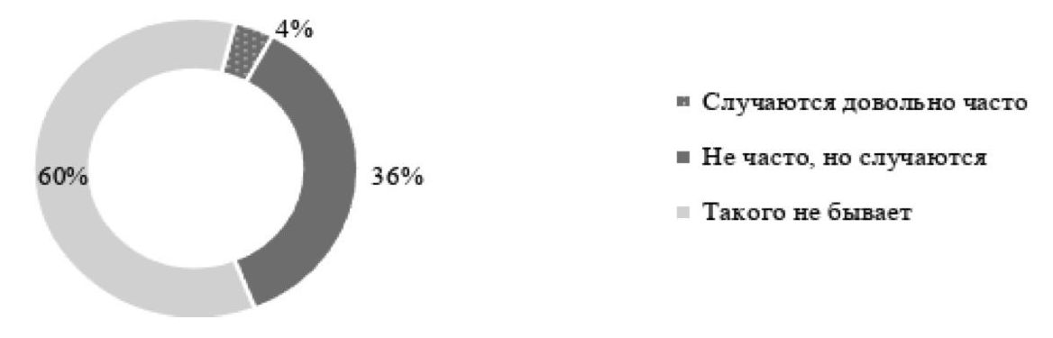 Рисунок 7. Распределение ответов респондентов о том, случаются ли в их семьях продолжительные (длящиеся неделю и больше) конфликты (в % от общего числа респондентов, имеющих семью, n–1424)