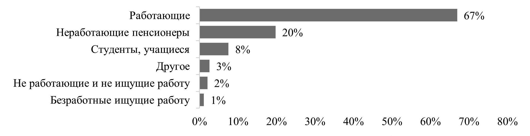 Рисунок 1. Распределение ответов респондентов об их занятости (в % от общего числа респондентов, n–1602)