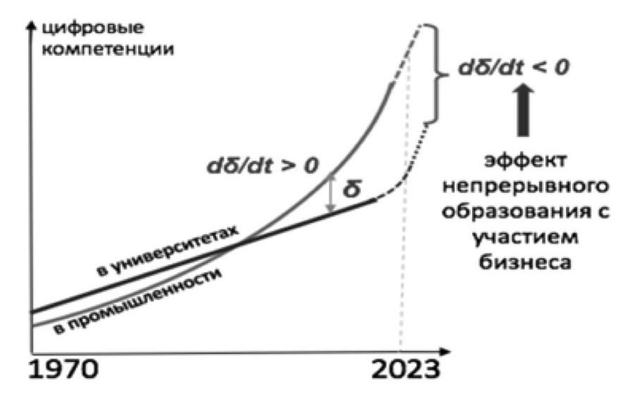 Рисунок 1. Динамика разрыва между цифровыми компетенциями в промышленности и в инженерном образовании