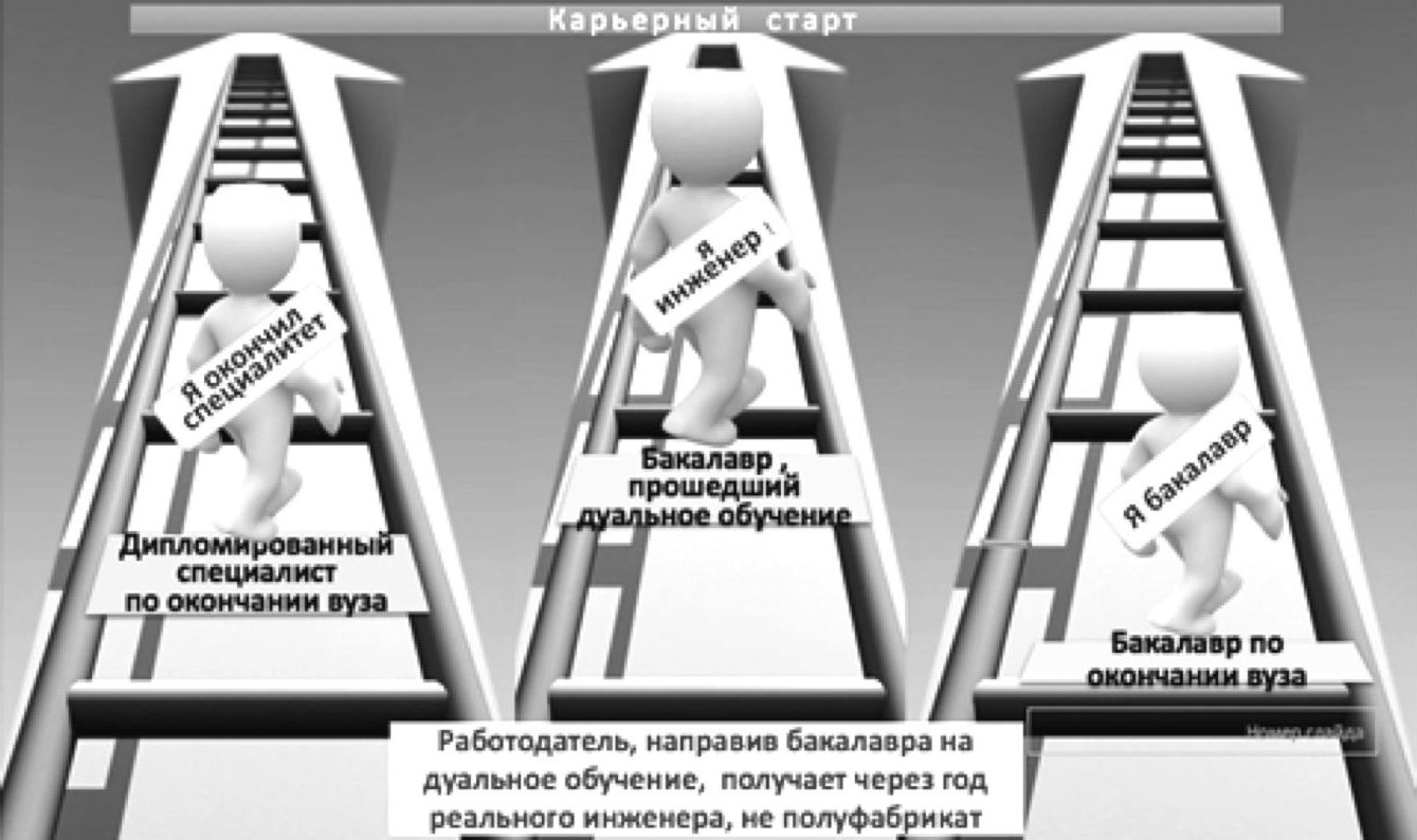 Что касается эффективности технологии дуального обучения, то оценка находится в пространстве «цена-качество». Прошедший годичное дуальное обучение трудоустроенный бакалавр по своим знаниевым и деятельностным компетенциям, безусловно, будет превосходить новоиспеченного выпускника специалитета, однако готовность бизнеса инвестировать в дуальное обучение оставляет желать большего. Отдавая себе отчет в том, что полученное выпускниками технических вузов инженерное образование не является завершенным, отечественный работодатель, как уже выше было отмечено3 продолжает тем не менее настаивать на том, что вузы за государственный счёт должны готовить только таких специалистов, которые будут способны на следующий день после зачисления в штат включаться в работу, и именно как специалисты.