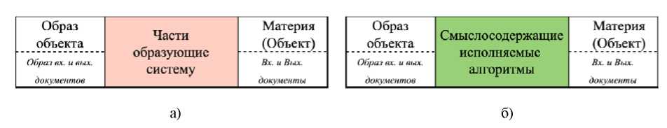 Если существующей методологией в разрыве проектируются создающие материю системы, например выходные документы (Рис. 5, а), то в предлагаемом конвергентном подходе в разрыве из ГФ правил организации эффекта эмерджентности и терминов конструируются графические алгоритмы создания материи (Рис. 5, б). Использование конвергентного подхода позволит сформировать и классифицировать ГФ правил. Уже сейчас можно указать на перспективы развития Low-code платформ, в основе которых должна лежать пространственная методология конструирования из графических форм правил и материи (терминов) совокупностей взаимопроникающих смыслосодержащих исполняемых графических алгоритмов, решающих социальные, информационные и технические проблемы создания материи. Некоторые теоретические положения и правила пространственной методологии, а также ее практическое применения для конструирования смыслосодержащих исполняемых графических алгоритмов решения проблем опубликованы в теоретических работах автора [21], а также в практических исследованиях его коллег [22-24].