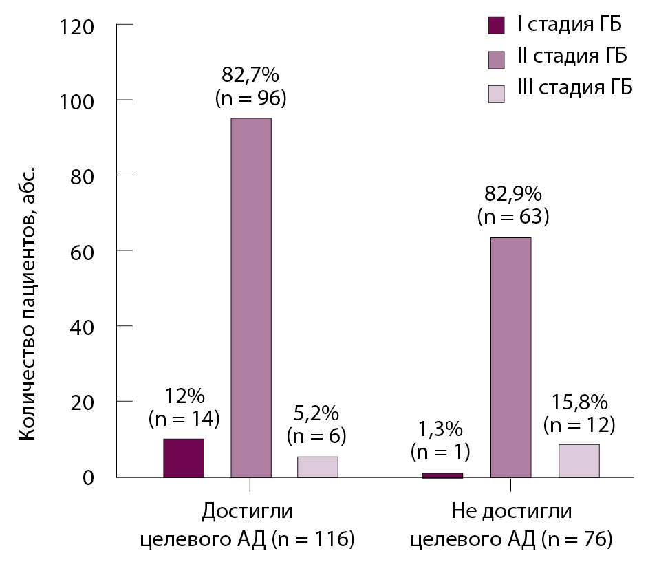 В настоящем исследовании была выделена когорта пациентов, не достигших целевого АД ниже 140 и/или 90 мм рт. ст. в период госпитализации.