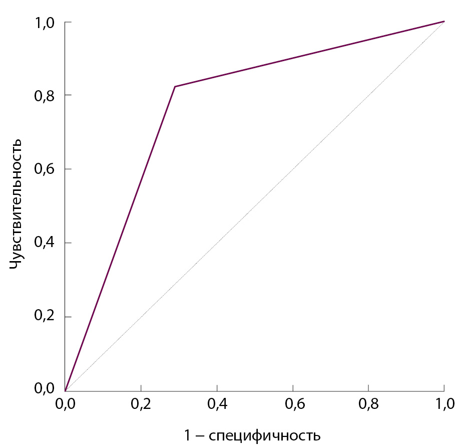 Рис. 3. ROC-кривая для регрессионной модели вклада асимметричного диметиларгинина и сахарного диабета 2-го типа в недостижение целевого артериального давления