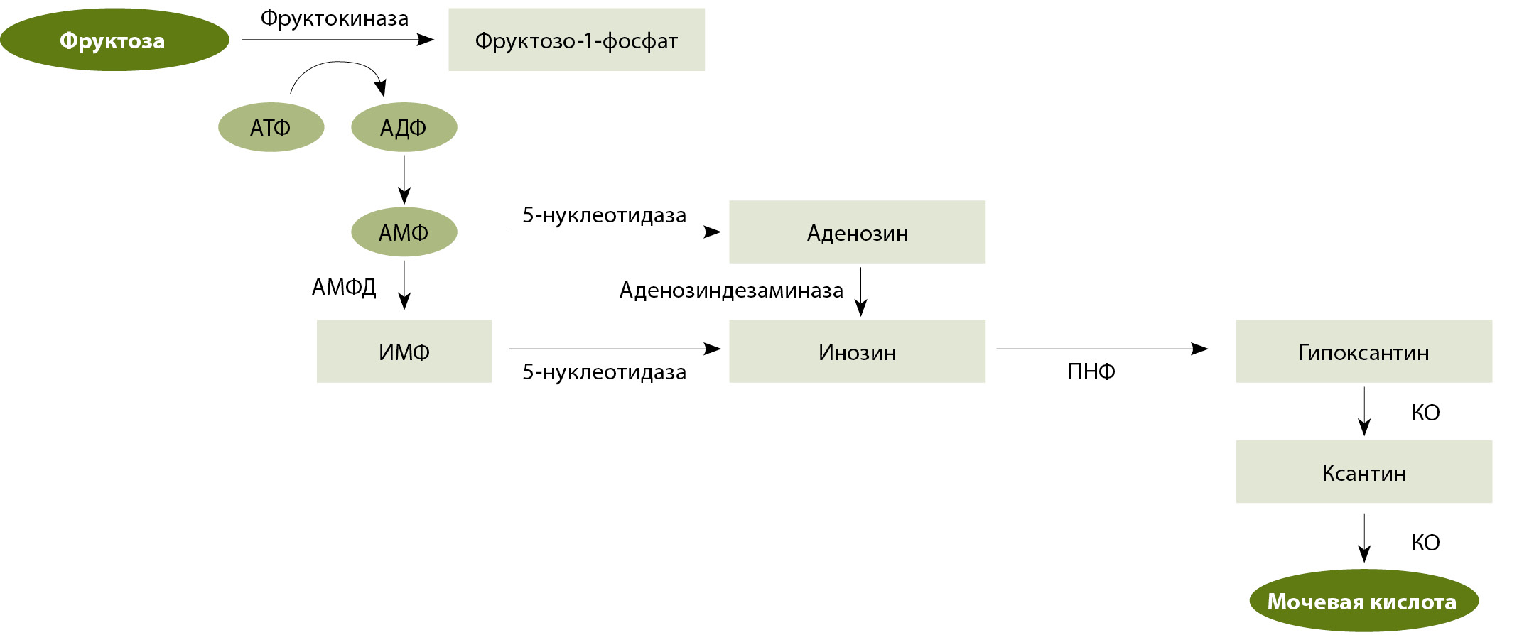 Механизм влияния фруктозы на концентрацию мочевой кислоты