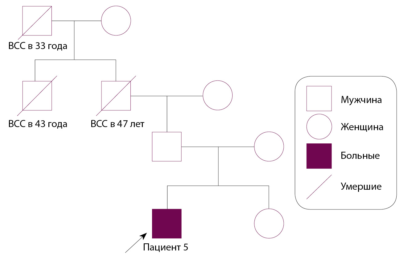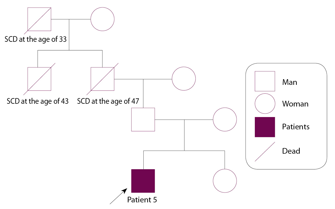 Fig. 4. The genealogy of the patient 5 (family 3); SCD, sudden cardiac death
