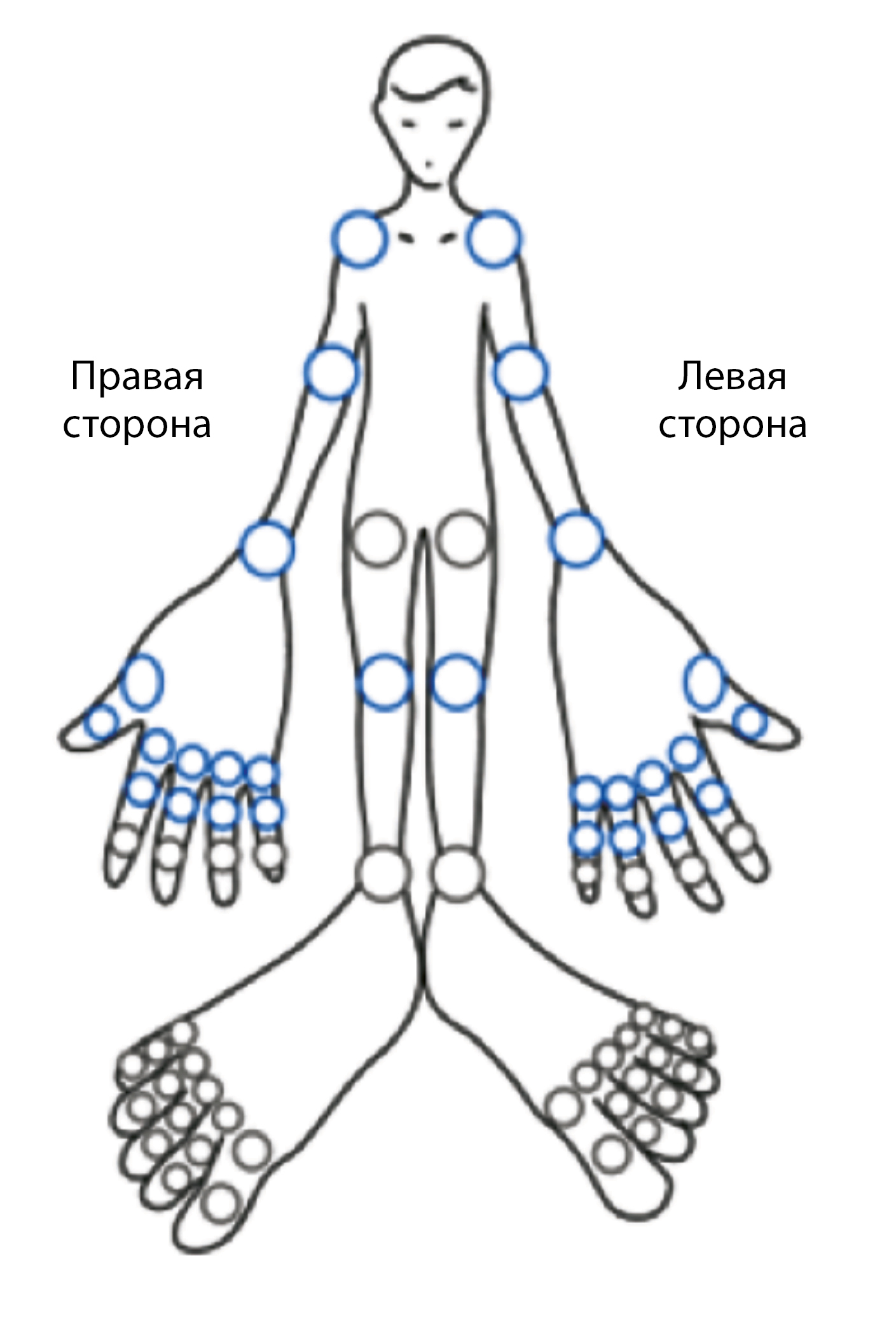 Анкетная форма включала 24 вопроса, нацеленных на сбор социально-демографических данных, определение факторов риска неинфекционных заболеваний, оценку наследственности пациента, выявление жалоб со стороны различных систем организма, получение сведений о приеме лекарственных препаратов (нестероидные противовоспалительные препараты, диуретики, гипотензивные препараты, глюкокортикостероиды, химиотерапевтические средства и лучевая терапия), а также специальный вопрос для женщин – о патологически протекающей беременности. Наличие в анкете визуального ряда, представленного в форме оригинальных цветных фотоиллюстраций, позволяло заподозрить у пациента клинические признаки аутоиммунного (псориатический артрит, псориаз, синдром Рейно) и воспалительного ревматического заболевания (подагра), а также провести дифференциальную диагностику суставного синдрома.
