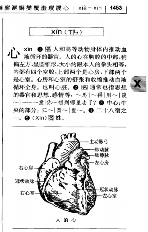 Статья «Сердце» из Толкового словаря современного китайского языка