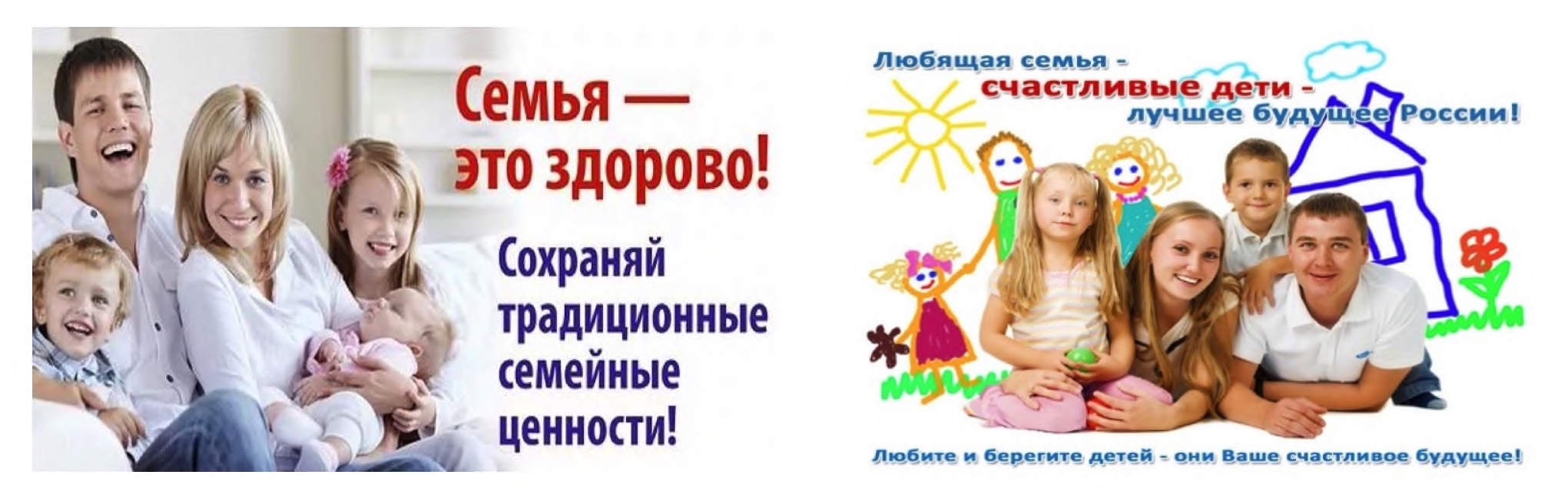 Социальная реклама института семьи и брака призвана сохранить традиционные российские ценности. Отметим, что, согласно результатам социологического опроса, ценность семья является самой главной ценностью носителей русского языка и культуры [Казаченко 2021]. Ценность семьи закреплена в Конституции РФ, выступая одним из главных факторов развития здорового общества, полноценного воспитания новых поколений граждан. Государство, путем принятия разнообразных государственных мер по поощрению материнства, охране интересов матери и ребенка, укреплению семьи, ее социальной поддержке, обеспечению семейных прав граждан, закрепляет ценности на законодательном уровне (Комментарий к Конституции РФ. Ст. 38). С ценностью семья часто связаны ценности материнства, отцовства и детства, что выражается во множестве слоганов, таких как: