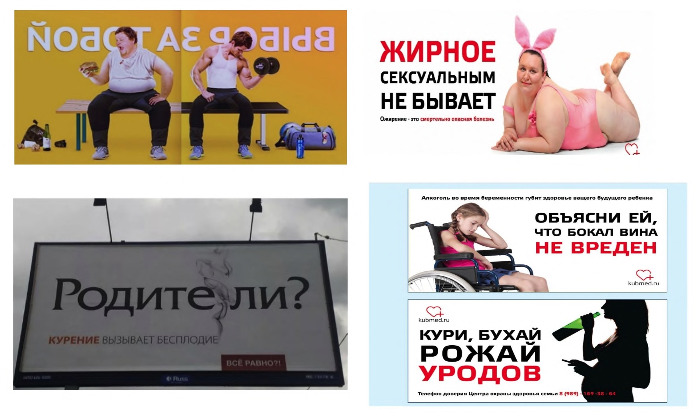 Рис. 5. Примеры антиценностей в социальной рекламе здоровья и здорового образа жизни