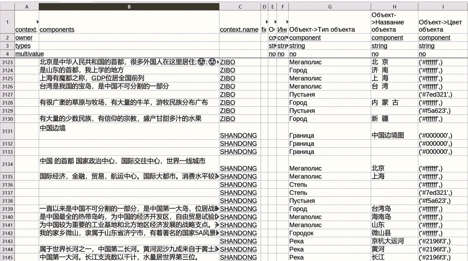 Рис. 2. Скриншот фрагмента файла с текстовым слоем ментальных карт Китая