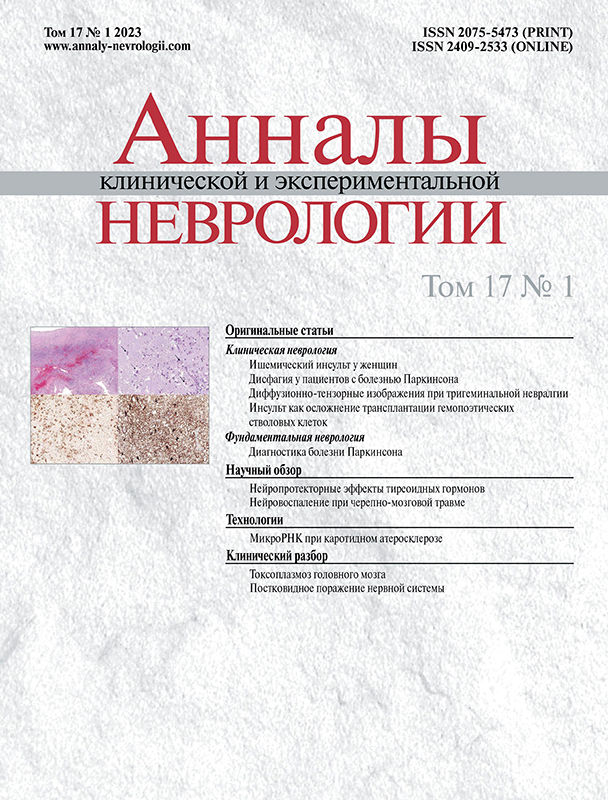 С развитием эндоваскулярных реперфузионных технологий и внедрением мультимодальных методов нейровизуализации принцип нейропротекции при ишемическом инсульте проходит новый этап развития. В течение последних лет вектор исследований в области нейропротекции постепенно смещается в сторону изучения эндогенных субстанций и их синтетических аналогов. Согласно накопленным данным, тиреоидные гормоны (ТГ) и их метаболиты представляются потенциально эффективными нейропротекторами при ишемии головного мозга.