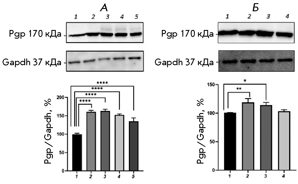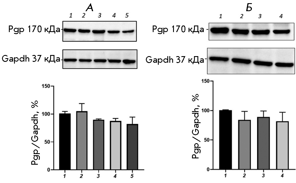 The combined use of BSO and CINPA1 prevented an increase in the relative P-gp content; the transporter protein level did not differ significantly from that in the control.
