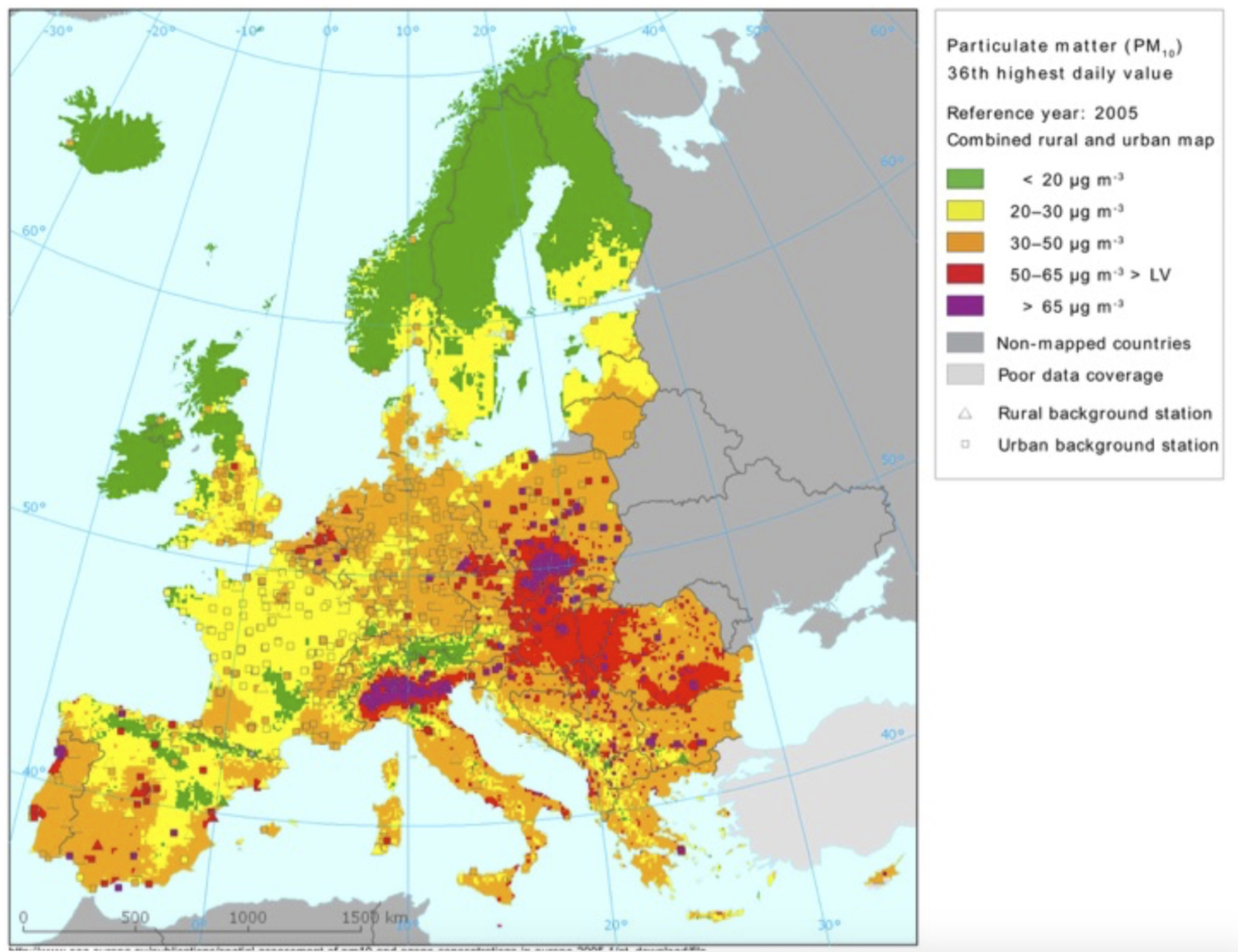 Fig. 5. PM-10 contamination in Europe https://commons.wikimedia.org/wiki/File:PM10_in_Europe.png