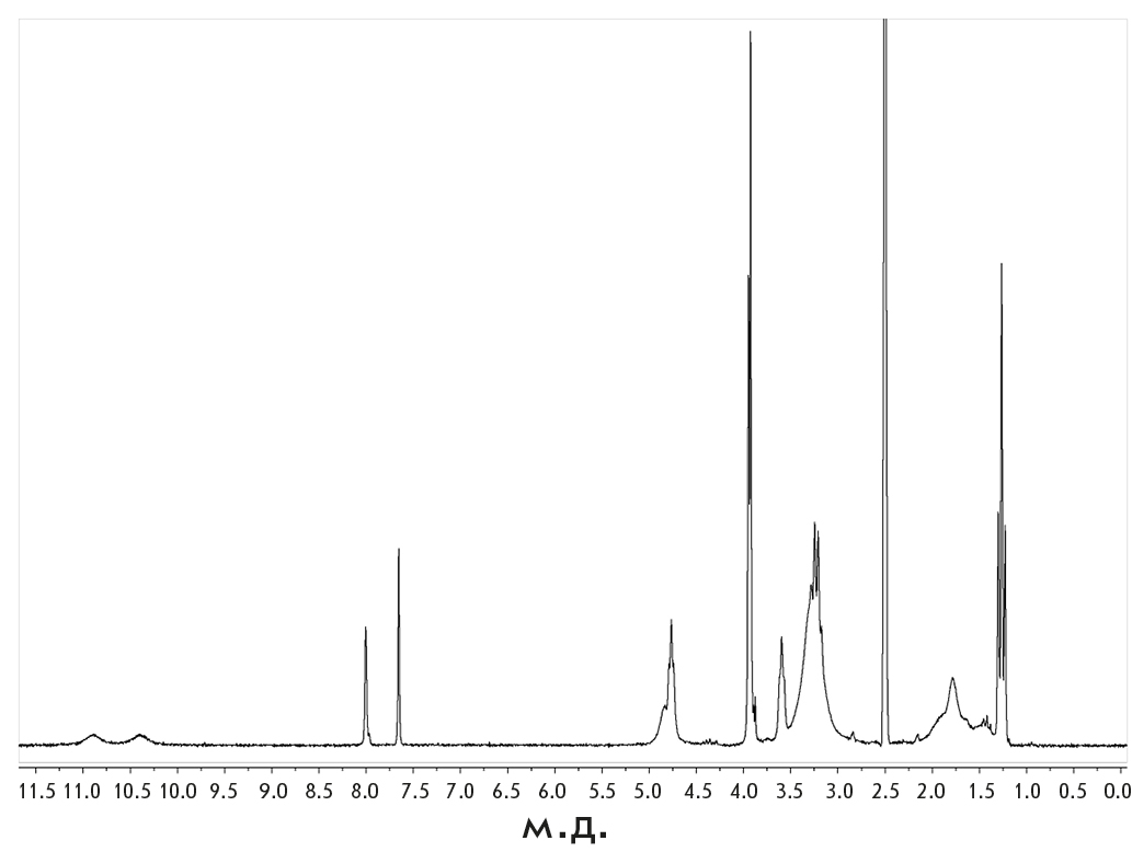 δ 10.76 (br s, 1H), 10.23 (br s, 1H), 8.03 (s, 1H), 7.65 (s, 1H), 4.87 (d, J = 4.8 Hz, 2H), 4.76 (t, J = 5.1 Hz, 2H), 3.95 (s, 3H), 3.93 (s, 3H), 3.61 (m, 2H), 3.50–3.06 (m, 8H), 2.15–1.33 (m, 6H), 1.26 (t, J = 7.2 Hz, 6H) (Fig. 4).