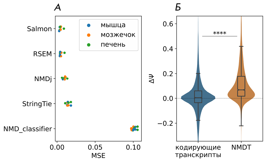 The method developed in this paper can be used to study gene expression regulation via unproductive splicing [6]. In particular, it can be applied to problems such as searching for specifically expressed NMDTs and assessing the activity of the NMD system as a whole. Thus, NMDj closes the existing gap in the toolkit for studying the conjugation between AS and NMD.