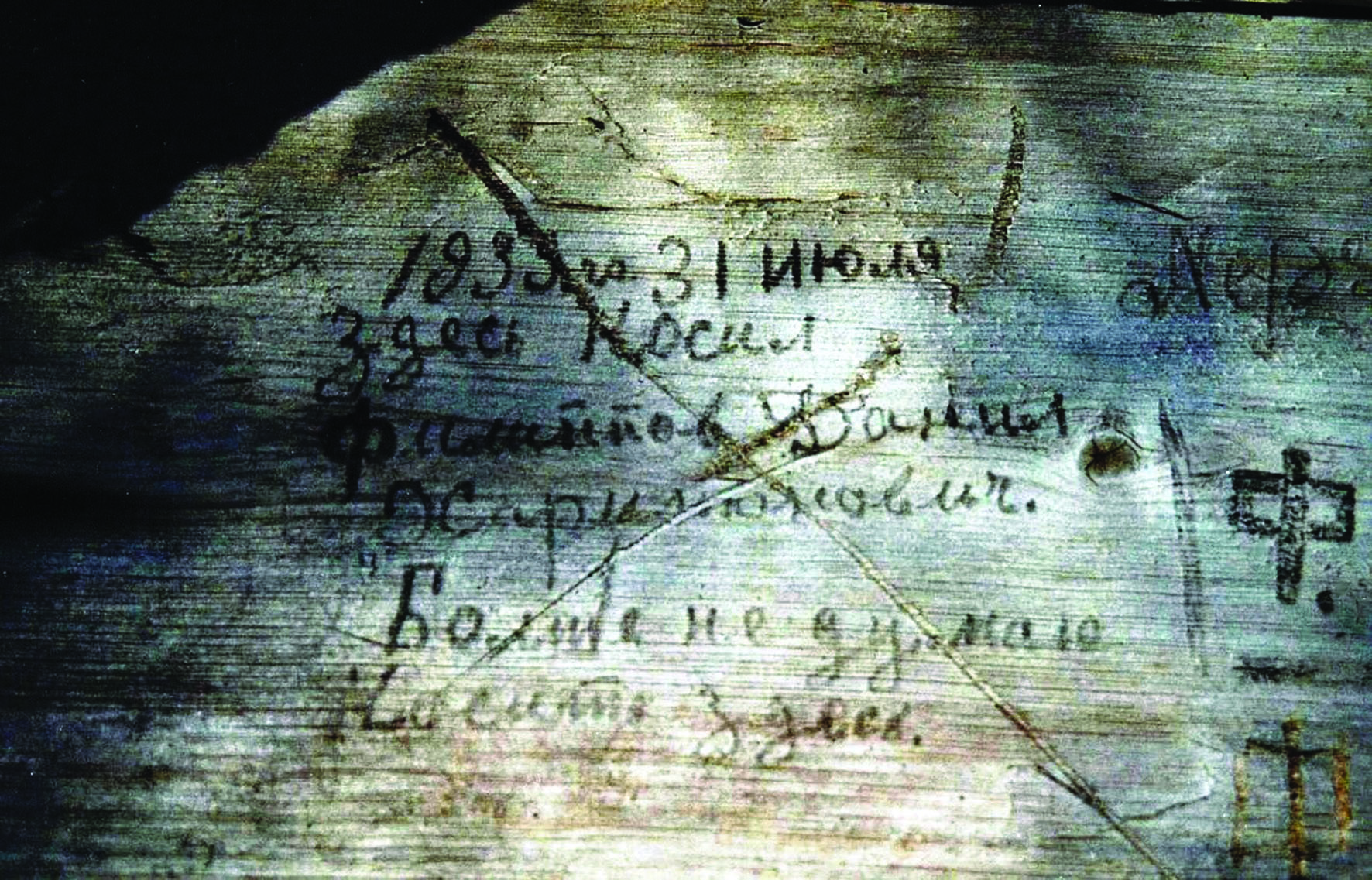 Fig. 6. The Chapel on Lake Chesynyavr. The inscription on the wall