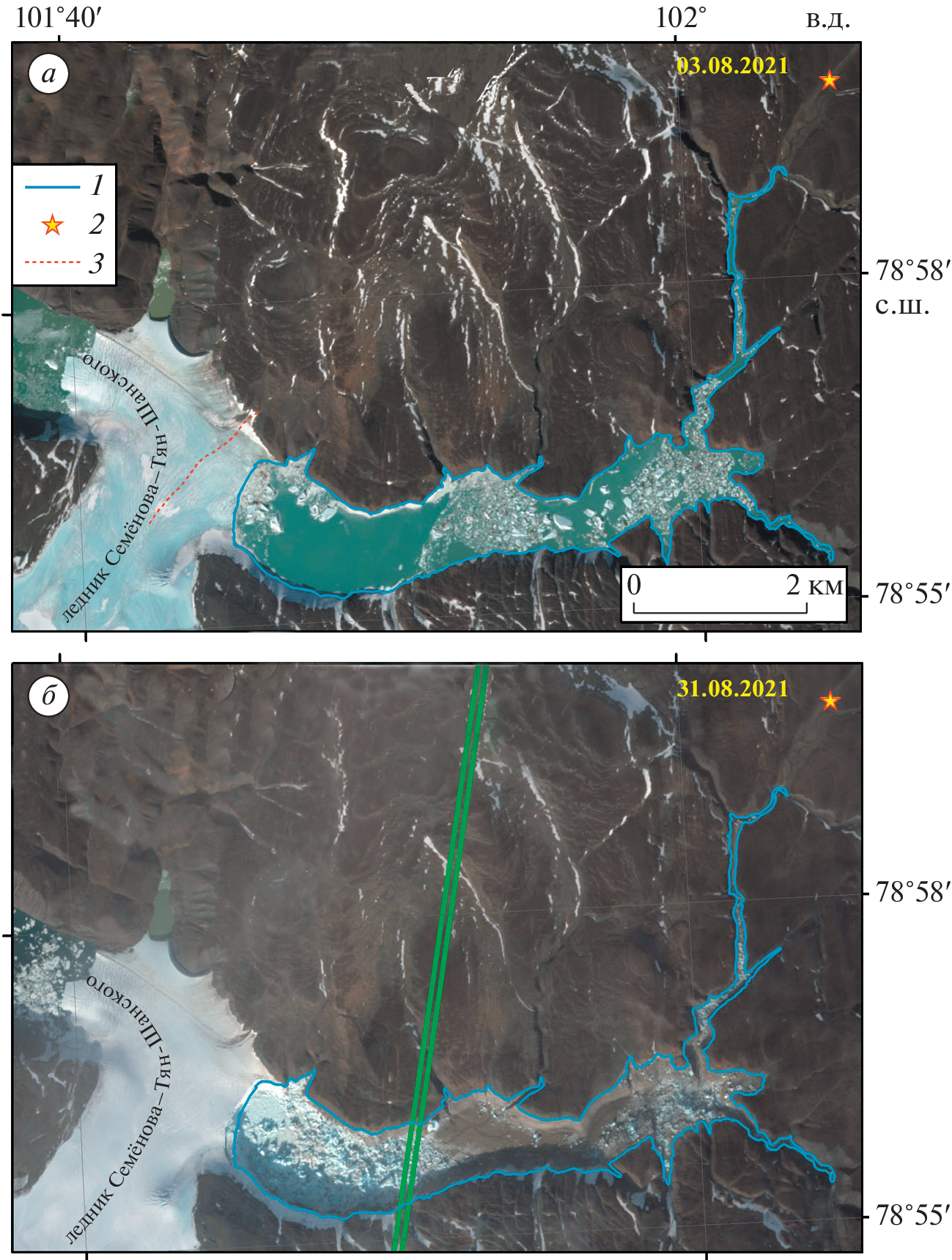 - Chernov R.A., Muraviev A.Ya. Catastrophic outburst-flood of the Spartakovskoye glacier-dammed lake on the Bolshevik Island (Severnaya Zemlya). Kriosfera Zemli. Earth’s Cryosphere. 2020, 24 (4): 58–68. https://doi.org/10.21782/EC2541-9994-2020-4(50-59).