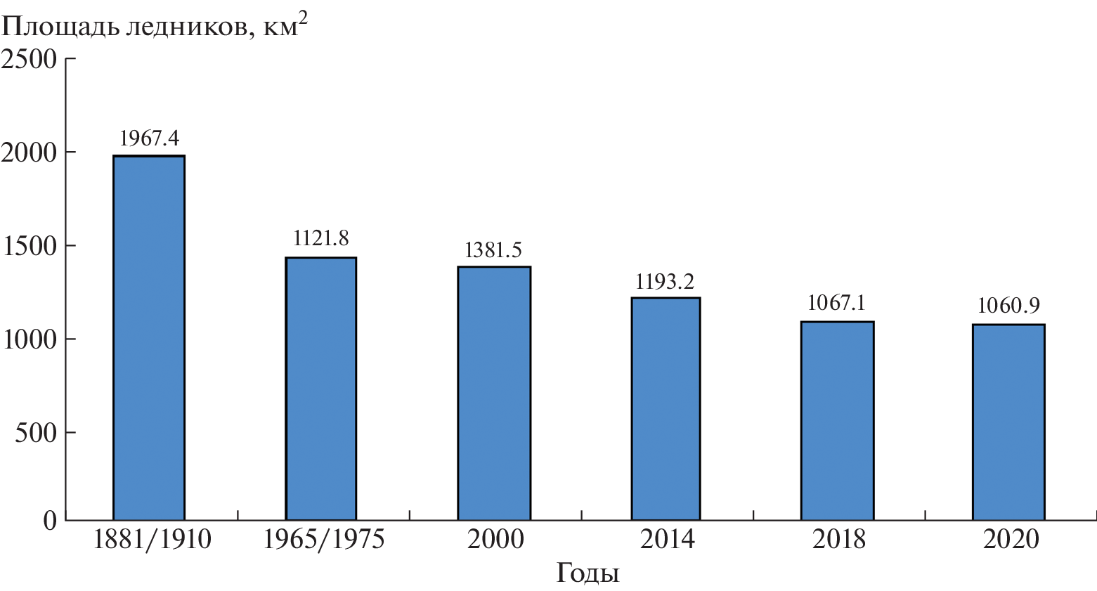 Проведённые в последнее время исследования позволили получить детальную картину изменений ледников в наиболее обеспеченных данными горных районах России. Для оледенения Кавказа получены данные на временные срезы 1911, 1952, 2000, 2014, 2018 и 2020 г.; для Алтая – на 1850, 1952, 2003 и 2018 г. Для крупных узлов оледенения Центрального Алтая – Катунского, Южно- и Северо-Чуйского хребтов дополнительно на 1968, 2008, 2017 г. В обоих районах выявлены устойчивое сокращение площади ледников с начала ХХ в. и ускорение темпов сокращения в начале ХХI в. Для исследования ледников Камчатки были использованы данные Каталога ледников СССР и снимки с разных спутников и за разные годы (2007–2019). Выявлено множество ледников, ранее не зарегистрированных в Каталоге ледников СССР. Площадь оледенения в разных районах Камчатки со времени первой каталогизации изменялась крайне неравномерно, что связано со значительными различиями в морфологии ледников. Ледники вулканических районов увеличили свои размеры или оставались стационарными; здесь нет тенденции к сокращению ледников из-за мощной поверхностной морены, состоящей из вулканогенного материала. Сравнение данных Каталога ледников СССР (1965–1982) и Каталога ледников России (2017–2019) показывает сокращение площади оледенения с середины ХХ в. до конца второй декады ХХI в. во всех горных районах России за исключением вулканических областей Камчатки.