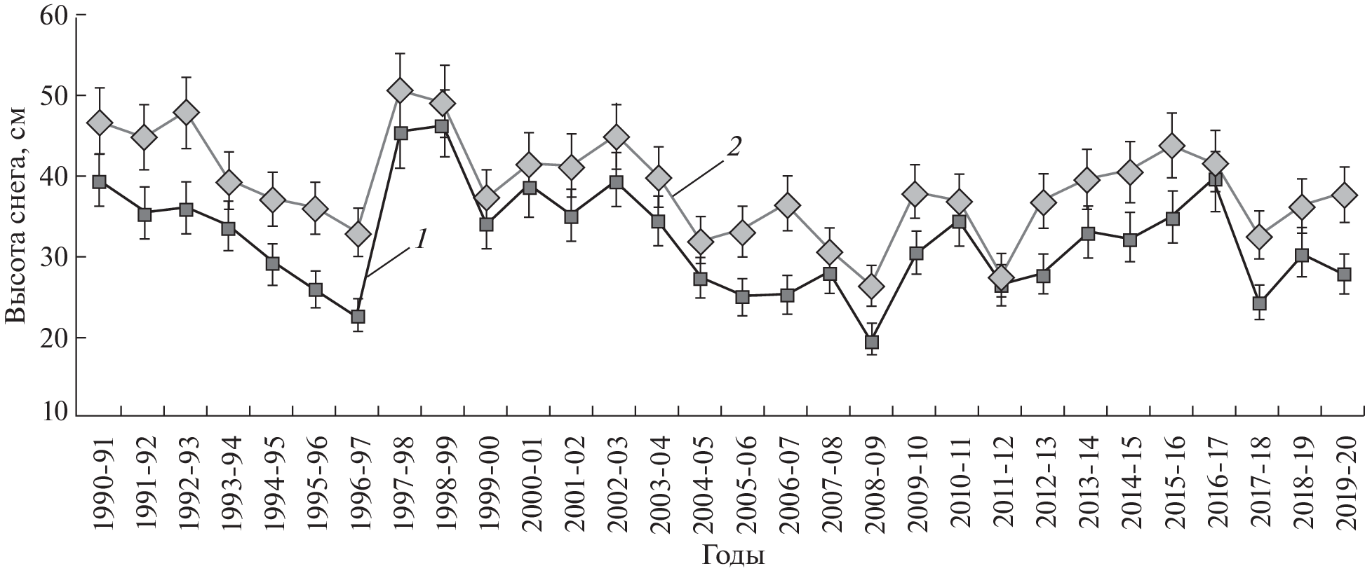 - Martynova Yu.V., Matyukhina A.A., Voropay N.N., Krupchatnikov V.N. Features of the snow cover formation in Siberia and the relationship with the atmospherics dynamics anomalies in the Northern Hemisphere. Ekologiya. Ekonomika. Informatika. Seriya: Sistemnyj analiz i modelirovanie ekonomicheskih i ekologicheskih system. Ecology. Economy. Computer science. Series: System analysis and modeling of economic and ecological systems. 2021, 1 (6): 118–125. https://doi.org/10.23885/2500-395X-2021-1-6-118-125 [In Russian].